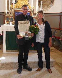 Dank an Pfarrer Karl-Heinz Brendel für 20 Jahre Dienst als Seelsorger in der Gemeinde Muhr am See Beim Gottesdienst am vergangenen Sonntag in der St. Johanniskirche in Altenmuhr bedankte sich die Mesnerin Frau Karin Schuster im Namen der gesamten Kirchengemeinde bei Pfarrer Karl-Heinz Brendel für seine zwanzigjährige Tätigkeit als Seelsorger in der evangelischen Pfarrgemeinde Muhr am See. Karin Schuster überreichte Pfarrer Brendel als Dank einen Blumenstrauß und einen passenden Zeitungsartikel mit der Bitte, dass er der Kirchengemeinde als Seelsorger noch lange erhalten bleiben wird.