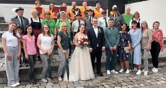 Im Beisein von Familie und Freunden gaben sich Marco und Anja Völklein, geb. Kümpflein, in der Festscheune des Altmühlseeinformationszentrums in Muhr am See das Ja-Wort. Die standesamtliche Trauung zelebrierte Bürgermeister Dieter Rampe mit persönlichen Worten für das Paar. Nach der Zeremonie wartete ein großes Spalier auf die Frischvermählten. Für den Schützenverein Alten- und Neuenmuhr e.V., für diesen die Eheleute ehrenamtlich tätig sind und der Brautvater das Amt des 1. Schützenmeisters inne hat, gratulierte Ehrenschützenmeister Alfred Messerer und überreichte ein Präsent. Anschließend ließen die Schützen das Paar mit einem dreifachen "Schützen-Heil" hochleben. Die Arbeitskollegen der Braut, beschäftigt bei der Fa. Antritt-Bau, warteten mit einem Parcours aus mit Blumen geschmückten Schaufeln, Schildern und Absperrbändern, durch den der Bräutigam seine Braut gekonnt durchführte. Auch hier gratulierten die Kollegen herzlich mit einem Präsent. Die Kollegen der AOK, bei dieser der Bräutigam arbeitet, "beschirmten" den Weg durch das Spalier und überraschten das glückliche Paar mit Luftballons, Seifenblasen und einem Geschenk. Nach Entgegennahme aller Glückwünsche lud das Brautpaar zu einem Sektempfang vor Ort ein. Die Hochzeitsfeier fand dann im Gasthaus "Zum Hirschen" in Muhr am See statt.