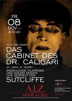 Muhr am See – Am 08. November 2024 lädt die Gemeinde Muhr am See ins Altmühlsee Informationszentrum (AIZ) zu einem ganz besonderen Filmabend ein: Gezeigt wird der Stummfilm-Gruselklassiker „Das Cabinet des Dr. Caligari“ (1920), der als Meilenstein der Filmgeschichte gilt. Die Filmmusik wird von der bekannten Band „Sutcliffe live gespielt, die mit ihrem einzigartigen Sound für eine packende Atmosphäre sorgen wird.