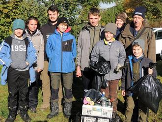 Die Fischerjugend mit dem eingesammelten Müll mit ihren Betreuern und Jugendleiter Helmut Laux (hinten rechts)