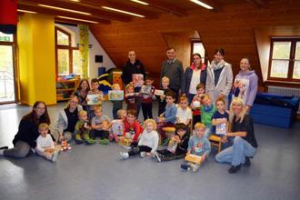 Für die Kinder des Kindergartens in Muhr am See gab es am vergangenen Mittwoch eine besondere Überraschung. Eine Abordnung des Babybasars besuchte sie und übergab im Beisein von Pfarrer Karl-Heinz Brendel einen Karton mit Spielsachen im Wert von rund 250 Euro an die Leiterin Esther Maurer. Die Spende wurde aus dem Erlös des letzten Baby- Basars im AIZ finanziert und die Kinder durften sich auch gleich ihre Lieblingsspielsachen heraus suchen.