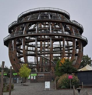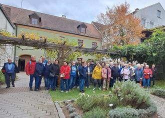 Auf reges Interesse stieß auch der zweite Jahresausflug des VdK Ortsverbandes am 14. Oktober 2023, denn bereits wenige Wochen nach Bekanntgabe des Reiseziels, das Oberpfälzer Seenland, war der Bus mit seinen 55 Sitzplätzen ausgebucht. Obwohl sich das Wetter nicht von der besten Seite zeigte, konnte das die gute Laune nicht trüben. Auf der Hinfahrt gab es bei der Pause auf dem Rastplatz „Oberpfälzer Alb“ Kaffee und Kuchen, gestiftet vom Busunternehmen „Böhm“. Unser erstes Ziel war der Kräutergarten in Schnaittenbach (Gruppenbild)). Danach ging es zum gemeinsamen Mittagessen in den Gasthof der Brauerei „Jacob“ nach Bodenwöhr. Gut gestärkt brachte uns der Bus nach Steinberg am Steinberger See, wo der Seenlandführer zustieg und uns in einer 90-minütigen Rundfahrt, verbunden mit einigen Ausstiegen, die Entstehung dieses Seenlandes näherbrachte. Er berichtete von der Zeit des früheren Kohleabbaus und nach dessen Erliegen von dem Entstehen einer touristisch genutzten Region. Wir erfuhren auch etwas über die damals geplante Wiederaufarbeitungsanlage Wackersdorf. Mit deren Bau wurde 1985 begonnen, aber nach heftigen Protesten von Seiten der Bevölkerung 1989 eingestellt. Heute wird dieses Gelände als Gewerbegebiet genutzt. Ausklingen ließen wir den Tag in der Kugelwirtschaft am Steinberger See und einige Reiseteilnehmer ließen es sich trotz Regens nicht nehmen, die mit 40 Höhenmeter weltgrößte begehbare Erlebnisholzkugel zu erkunden. Leider war wegen des Wetters die Rutsche gesperrt, die „Mutige“ an Stelle des Rückweges hätten nutzen können. Gegen 17:30 Uhr traten wir die Heimreise an.
