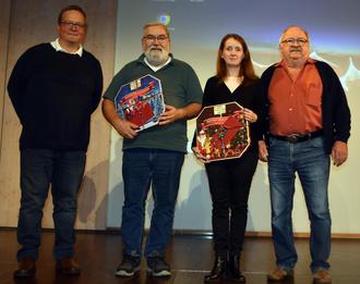Hans Buck überreichte für den Freundeskreis ebenfalls ein kleines Präsent an Sarolta (Schatzi) Bedei als Dank für die immer sehr lebhafte Gestaltung der Partnerschaft und an Herrn Gronauer von der Gemeindeverwaltung für die langjährige Tätigkeit als Schriftführer und Kassier und als Ansprechpartner in der Gemeinde für den Freundeskreis.