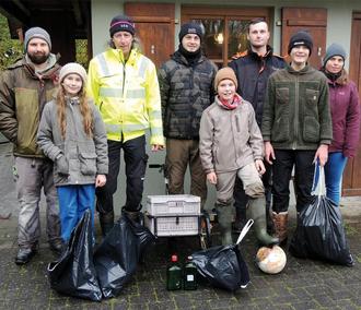Die Fischerjugend mit Jugendleiter Helmut Laux (dritter von links) und den eingesammelten Müll.