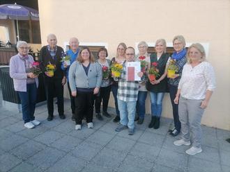 Die geehrten Mitglieder mit 1. Vorsitzender Anja Holzinger (4. Von links) und 2. Vorsitzende Andrea Hofmeier (rechts)
