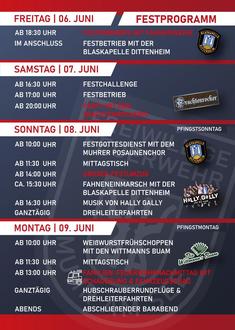 Der Pfingstsonntag, 8. Juni 2025, startet um 10:00 Uhr mit einem Festgottesdienst im Festzelt. Im Anschluss wird ein Mittagstisch für alle Besucher angeboten. Das Highlight bildet ab 14:00 Uhr der große Festzug der Vereine durch den Muhrer Ortsbereich. Nach dem obligatorischen Fahneneinzug spielt die Party-Band „Hally Gally“ auf. Interessierte, die den Festplatz von oben sehen wollen, haben ganztägig die Möglichkeit, an den angebotenen Drehleiterfahrten teilzunehmen.
