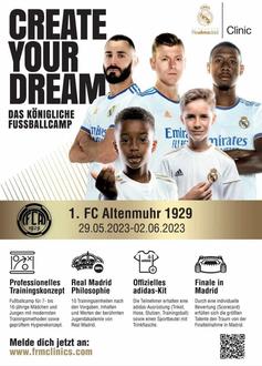 Da hat der 1. FC Altenmuhr aber einen dicken Fisch an Land gezogen: Vom 29.05. - 02.06.2023 (erste Woche der Pfingstferien) wird die Fundación Real Madrid Clinic ein Fußballcamp auf dem Sportgelände in Muhr am See für interessierte Kinder und Jugendliche im Alter von 7 - 16 Jahren aus der Region abhalten. Ziel ist es dabei, junge Fußballerinnen und Fußballer mit professionell geschulten Trainern sowohl sportlich als auch menschlich weiterzubringen. So besteht das Camp aus insgesamt 10 Trainingseinheiten, die auf den Vorgaben der Jugendakademie von Real Madrid basieren und mittels modernsten Trainingsmethoden und -technologien umgesetzt werden. Doch auch das soziale Auftreten ist Kernelement dieser Fußballschule. So steht die Wertvermittlung wie Respekt, Fairplay und Disziplin genauso im Fokus wie die Entwicklung von Führungsqualität und Siegermentalität. Daher wird auch immer ein Best Teamplayer-Award vergeben. Für jeden besteht darüber hinaus die Chance auf ein sportliches Weiterkommen bis hin zum Finale in Madrid. Damit auch tatsächlich die Ganzheitlichkeit des Sports berücksichtigt wird, erfahren die Teilnehmerinnen und Teilnehmer auch Einiges über gesunde Ernährung, wichtige Hygiene und richtige Ausstattung. Weiter Informationen und Details finden sich unter dem Link https://frmclinics.com/1.-fc-altenmuhr-1929-e.V.-2023 sowie bei Johannes Holzinger (Tel.: 0171/5404586) oder Stephan Hoyer (Tel.: 09831/613101). Gerade nach den langen Corona-Pausen und -einschränkungen der vergangenen Jahre bietet dieses Camp eine herausragende Möglichkeit, die eigenen Fähigkeiten durch eine professionelle Anleitung zu verbessern.