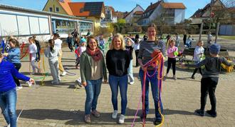 Die Schülerinnen und Schüler der Grundschule Muhr am See erhielten vom Elternverein neue Pausenspielgeräte für ihre Pausenkisten.