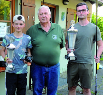 Die Pokalgewinner Janne Schneider, Jugend und Fabian Laux, Senioren mit Vorstand Robert Walz (mitte).