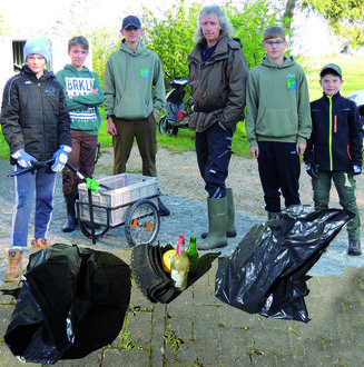 Die Fischerjugend mit Jugendleiter Helmut Laux und den eingesammelten Müll. Text und Bild: Wolfgang Bickel