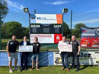 Zusammen schafft man viel, wenn nicht sogar mehr. Für den 1. FC Altenmuhr erfüllte sich in dieser Saison der langgehegte Wunsch nach einer Anzeigetafel für den A-Platz der Fußballabteilung. Motor dahinter war Abteilungsleiter Johannes Holzinger, der nicht nur die Idee entwarf, sondern sich auch auf Sponsorensuche begab. Bei der Sparkasse in Person von Michael Kleemann und der Raiffeisenbank mit Julian Schneider rannte er dabei schnell offene Türen ein und so konnte sich der Verein um Vorstand Stephan Hoyer über eine Spendenzusage von 2.000€ freuen. Mit der zusätzlichen Eigenleistung von Spielern der Herrenmannschaften konnte schließlich das Projekt erfolgreich zum Abschluss gebracht werden und ziert nun den Hauptspielort. Ein herzliches Vergelt`s Gott daher an unsere Banken vor Ort, deren Unterstützung für die Vereine eine Herzensangelegenheit ist und bleibt. Damit auch möglichst viele Spieler in den Genuss dieser Anzeigetafel kommen, wird auch die Jugendarbeit beim 1. FCA großgeschrieben. Daher wird für die kommende Saison noch ein Trainer für die U9 gesucht. Interessenten können sich gerne bei Johannes Holzinger ((0171-5404586) oder Jugendleiter Marc Fischer (0170-8959373) melden.
