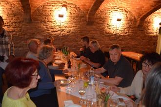 Der Vorsitzende des Freundeskreises der Altmühlsee-Festspiele, Heiko Schreiner, konnte mit seiner Stellvertreterin Renate Peiffer rund 20 Mitglieder des Freundeskreises und Helfer im Gewölbe des AIZ zur Weinprobe begrüßen.