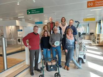 Exkursion der für den Landkreis Weißenburg-Gunzenhausen tätigen ehrenamtlichen Wohnraumberater ins Münchner „Kompetenzzentrum Barrierefreies Wohnen“ mit den Mitarbeiterinnen des Pflegestützpunktes Judith Thalhauser (1. Reihe, 2. v.li. und Anke Rudingsdorfer (erste Reihe, rechts) sowie Verena Wagner von der Freiwilligenagentur altmühlfranken (letzte Reihe rechts).