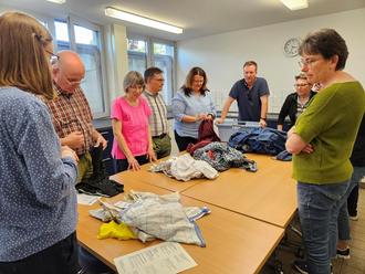 Neben den vielen Tipps zeigte Fachlehrerin Katrin Haubner auch praktisch wie der Schmutzwäscheberg im Haushalt zu bewältigen ist. Anhand der sechs goldenen Regeln zum nachhaltigen Waschen konnten die Teilnehmenden ihr eigenes Verbraucherverhalten überprüfen. So genügen für die im Durchschnitts-Haushalt anfallende Wäsche drei Arten an Waschmitteln: ein pulverförmiges Vollwaschmittel, ein Colorwaschmittel und je nach Bedarf ein Spezialwaschmittel für Wolle und Seide oder ein Flüssigwaschmittel für die Funktionstextilien.