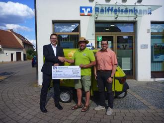 Die Freude beim Imkerverein Mönchswald e. V. aus Muhr am See war groß. In den Räumlichkeiten der örtlichen VR-Bank übergab der Geschäftsstellenleiter Jürgen Kleemann im Beisein von Imker Sebastian Segmüller, welcher Mitglied des Vereines und Bankangestellter der VR-Bank ist, eine Spende über 500 EUR. „Wir werden mit dieser Summe unsere vereinsinterne Zuchtgruppe für Bienenköniginnen aufbauen und hierzu Begattungskästchen anschaffen, welche wir dann ermäßigt an unsere Vereinsmitglieder weitergeben können, informierte der 1. Vorsitzende Helmut Barta. Ausserdem verhelfen wir Neuimkerinnen und -imkern durch gezielte Vereinsschulungen zu guter imkerlicher Praxis, damit es ihren Bienen und der Umwelt gut geht. Dies ist natürlich ebenfalls mit einem hohen Aufwand und Kosten verbunden“.
