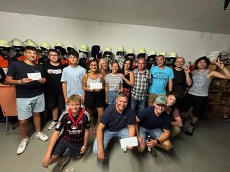 Die glücklichen Sieger des Kerwa-Wettkampfs „Saugleitung kuppeln“