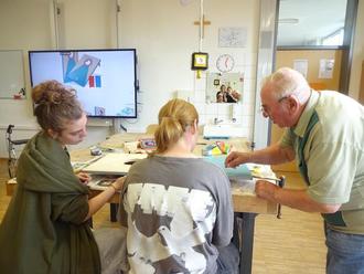 Tolle Projekte fanden dieses Schuljahr wieder mit der Schule statt, ob singen, basteln, Interviews beantworten oder wie hier auf den Fotos zu sehen: Zusammen handwerken und backen.