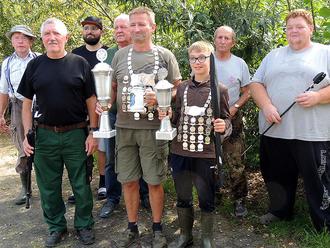 Unser Bild: Die beiden Fischerkönige Elias Bengel (Jugend) und Jörg Backhaus (Senioren) mit den nachfolgenden Preisträgern und Vorstand Robert Walz (vierter von links).
