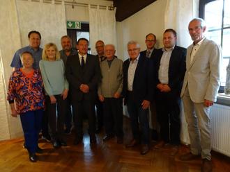 Stellvertretender Landrat Martin Stingl (hi. R. 3. v. l.) sowie amtierende und ehemalige Bürgermeister/ -Stellvertreter und Geschäftsleiter ließen die gemeinsame Zeit Revue passieren.