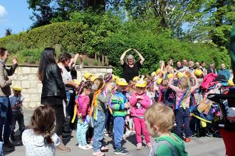 Zudem brachten die Kinder mit Liedern und Gedichten ihre Vorfreude zum Ausdruck und übergaben eine selbstgeschmückte Birke für den Dachstuhl.