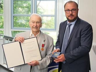 Hohe Auszeichnung: Für sein herausragendes Engagement bei der Pflege seiner Frau ist Albert Hübner (links) mit der Verdienstmedaille des Verdienstordens der Bundesrepublik Deutschland, überreicht von Landrat Sebastian Straubel, ausgezeichnet wurden.
