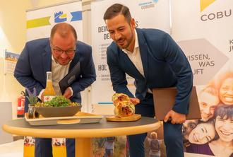 Ein leckeres Angebot: Landrat Sebastian Straubel (links) und Can Aydin, Coburgs Dritter Bürgermeister, sind begeistert davon, dass man mit dem Ferienpass von Stadt und Landkreis Coburg sogar günstig essen gehen kann.