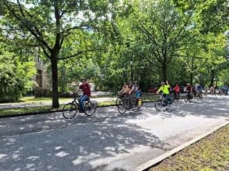Bereits um 12 Uhr startete die geführte Radtour des ADFC Coburg unter der Leitung von Marita Nehring am Markt in Coburg. Der Zustieg in den Gemeinden Großheirath, Untersiemau, Niederfüllbach, Grub am Forst, Ebersdorf und Weidhausen wurde trotz Regenwetter von einigen Personen genutzt, sodass gegen 14:45 Uhr rund 35 Personen an der Domäne Sonnefeld eintrafen. Auch aus anderen Ortschaften kamen zahlreiche Besucher, mit und ohne Rad.