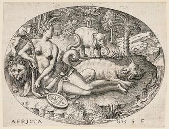Étienne Delaune, Afrika, aus: Die vier Erdteile, Kupferstich, 1575. Foto: Kunstsammlungen der Veste Coburg, Inv.-Nr. IX,16,346.