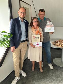 Mit einem herzlichen Dank für die geleistete Arbeit überreicht ihr Herr Büttner eine Urkunde sowie ein Präsent.