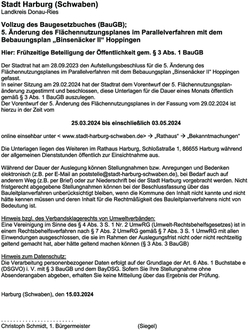 online einsehbar unter < www.stadt-harburg-schwaben.de> à „Rathaus“ à „Bekanntmachungen“
