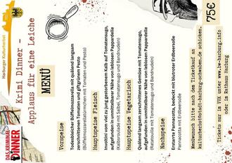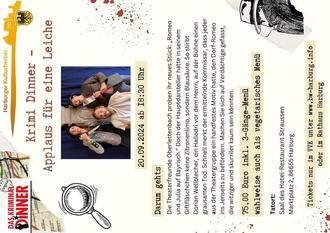 Am 20.09.2024 findet um 18:30 Uhr ein Krimi-Dinner im Saal des Hotel-Restaurant Straussen statt. Karten sind nur im Vorverkauf unter www.bw-harburg.info oder im Rathaus Harburg erhältlich.