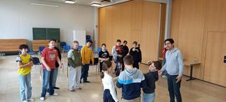 Für die Klassen 6a und 6b stand eine ganz besondere Unterrichtseinheit auf dem Programm. Im theaterpädagogischen Workshop, für den die Mittelschule Harburg im Rahmen ihrer Bewerbung für das Partnerschulen-Programm der LEW-Bildungsinitiative 3malE per Los den Zuschlag erhalten hatte, bearbeiteten die beiden Klassen gemeinsam mit Harald Volker Sommer, dem Leiter des Theaterpädagogischen Zentrums am Jungen Theater Augsburg, das Thema „Versteck dich nicht!“. Dabei wurden eigene Erfahrungen aufgegriffen und konkretisiert sowie verschiedene Methoden, wie Kennenlern- und Teamspiele, Brainstorming oder szenisches Spiel eingesetzt. Alle erprobten zunächst die Wirkung ihrer Körpersprache in unterschiedlichen Situationen. Die Workshopleitung lieferte Input und leitete die Schülerinnen und Schüler auf ihrem Weg zu ihren ersten Theatererfahrungen an. Zum Abschluss des Workshops stellten alle Teilnehmer zu einem selbstgewählten Thema ein kreatives Standbild dar. Diese Standbilder fügten sich dann zu einem Gesamtbild zusammen, bei dem jeder seine eigene selbst erfundene Rolle verkörpern konnte. Alle zeigten sich in der abschließenden Feedback-Runde begeistert und gingen mit einem positiven Resümee aus diesem Workshop: „Wir haben viel über die eigene Körpersprache erfahren und können nun im Alltag in manchen Situationen viel besser reagieren!“ (Charlotte, 13 Jahre). Wir bedanken uns bei der LEW für dieses tolle Angebot!