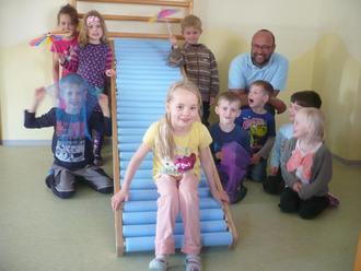 Die Rutsche ist beim Turnen und spielen vielseitig einsetzbar.