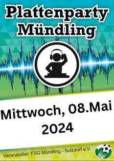 Am Mittwoch, den 08. Mai 2024 findet am Sportplatz in Mündling wieder die legendäre Plattenparty statt.