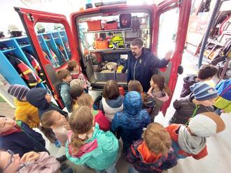 Im April machten sich die Schüler und Schülerinnen der dritten Klassen im Rahmen des HSU-Unterrichts mit ihren Lehrerinnen Frau Trautner, Frau Ossiander und Frau Bosch auf den Weg Richtung Feuerwehrhaus. Dort begrüßten die Männer der Freiwilligen Feuerwehr unter der Organisation von Herrn Gaudera die drei Gruppen. An kindgerechten Stationen wurden die theoretischen Grundlagen besprochen, Versuche vorgeführt, die Ausrüstung der Feuerwehrmänner und Feuerwehrfrauen inspiziert, die Löschfahrzeuge in Augenschein genommen und beim Feuerlöschen mittels Feuerlöscher selbst Hand angelegt. Ein gelungener Unterrichtsgang, bei welchem das Thema "Feuer" eindrucksvoll vermittelt wurde. Herzlichen Dank an die Vertreter der Freiwilligen Feuerwehr Harburg, die sich an diesem Tag Zeit für uns genommen haben!