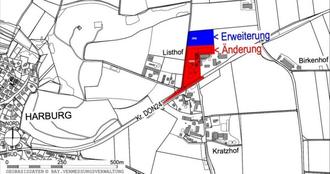 Da die Stadt Harburg den Ausbau erneuerbarer Energien begrüßt und unterstützen möchte, befürwortet sie die Änderung und Erweiterung des Bebauungsplanes, um so die städtebauliche Entwicklung und Ordnung für die vorgesehene Nutzung zu regeln.