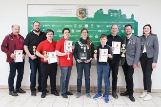 v.L. Franz Lechner, Michael Faul, Yannick Adams, Wolfgang Göttler, Marie-Luise Caesperlein, Moritz Göttler, Achim Lernhardt, 1. Schützenmeister David Link, 1. Sportwartin Jule Mayer