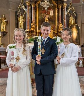 Am 04.05.2025 feierten 3 Kinder der Pfarrei St. Johannes d.Täufer Mündling die Hl. Erstkommunion. Nachdem Sie sich unter dem Motto „Ich bin der Weinstock, ihr seid die Reben“ auf diese Feier vorbereitet hatten, durften Sie während des Festgottesdienstes zum ersten Mal zum Tisch des Herrn und die Heiligen Sakramente empfangen. Wir wünschen den Dreien alles Gute auf Ihrem weiteren Glaubensweg.