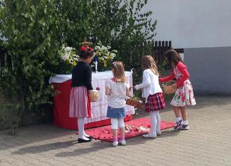 Kinder haben bei der Prozession eine ganz besondere Aufgabe: „Damit Gott ein weicher Weg bereitet wird“ streuen sie Blumen auf dem Weg, so sagt die Tradition.