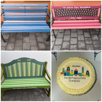 Die Kita Harburg feiert ihr 50-jähriges Jubiläum mit einem Fest voller Freude und Geschenke. Ein besonderes Highlight war das Geburtstagsgeschenk des Elternbeirats: Drei wundervoll restaurierte Sitzbänke, die nun die Eingangsbereiche der Kita verschönern und den kleinen Gästen sowie Eltern einen gemütlichen Platz zum Verweilen bieten. Die liebevolle Restaurierung macht die Bänke zu einem echten Blickfang. Natürlich durfte auch eine leckere Torte zum Jubiläum nicht fehlen. Die große, schön verzierte Torte war ein echter Hingucker und schmeckte köstlich. Vielen Dank an Frau Duma!