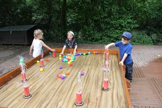 Es gab einen Klang-Rieselstein, ein großes Xylophon zum selbst „komponieren“, Stationen zum genauen hinhören, viele Gleichgewichts-und Bewegungsstationen, ein Wasserkissen, das Bienenzelt, das „schiefe Haus“, Wasserspiele und jede Menge weitere spannende und lustige Attraktionen.