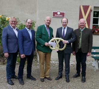 Die Gemeinnützige Fürst zu Oettingen-Wallerstein Kulturstiftung freut sich über die neue „Breze“ für die Pfisterei der Harburg.
