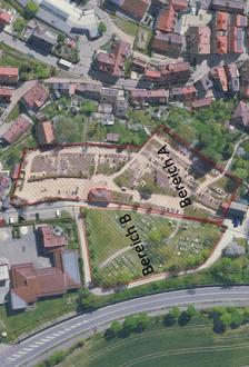 | Wird beim Ausheben eines Grabes im Bereich A auf einen weitgehend erhaltenen Sarg gestoßen, darf an dieser Stelle keine weitere Bestattung erfolgen. |