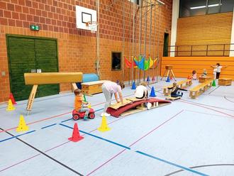 Als Vorstufe zum Eltern-Kind-Turnen gedacht.