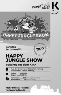 Am Sonntag 26.01. findet ein große Konzerterlebnis für die ganze Familie bei der Happy Jungle Show statt. Die Kinder tauchen in die wunderbare Welt von "Rodscha und Tom" ein und erleben in dieser grandiosen Live-Show ein Mitmach-Abenteuer der ganz besonderen Art.