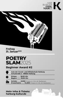 Am Freitag 31.01. wird die Aula der Grundschule Harburg-Schwaben Schauplatz eines besonderen Dichterwettstreits: Der Poetry Slam Beginner Award geht in die zweite Runde. Was ist Poetry Slam? Beim Poetry Slam treten Künstlerinnen und Künstler mit selbst verfassten Texten gegeneinander an.