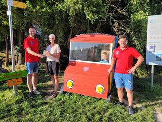 Das Team vom Märchenweg bedankte sich herzlich für die Spende und die Unterstützung, der ehrenamtlichen Harburger/innen die den Märchenweg seit 2019 planen, aufbauen und pflegen.