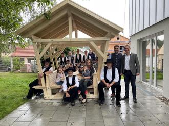 Donauwörther Berufsschüler zimmern überdachten Sitzplatz für Kita Burgblick