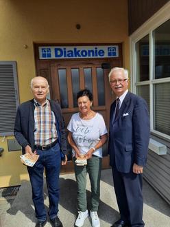 Im Juli feierten Hannelore und Günter Angermeyer aus Mauren ihre Goldene Hochzeit, zusammen mit Familie und Verwandten. 50 Jahre verheiratet sein und so lange gemeinsam durchs Leben gehen zu dürfen, ist ein großes Geschenk. Aus diesem Anlass hat das Ehepaar Angermeyer beschlossen, den Betrag von 500 EURO an den Diakonieverein Harburg zu spenden. Das Foto zeigt Günter und Hannelore Angermeyer zusammen mit dem Vorsitzenden des Diakonievereins Harburg, Pfarrer Reinhard Caesperlein, bei der Übergabe. Dieser bedankte sich recht herzlich und wünscht für die Zukunft weiterhin alles Gute.