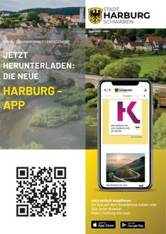 Machen Sie sich gerne selbst ein Bild der neuen Harburger Ortsapp. Diese kann im App oder Playstore unter dem Stichwort „Harburg“ gedownloaded werden, oder alternativ können Sie diese auch über den QR-Code abrufen.